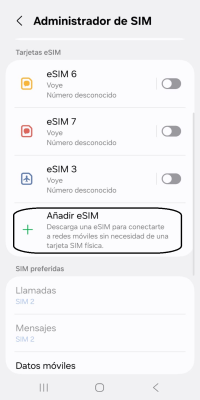 - Te recomendamos que etiquetes tu nueva eSIM como «VOYE».