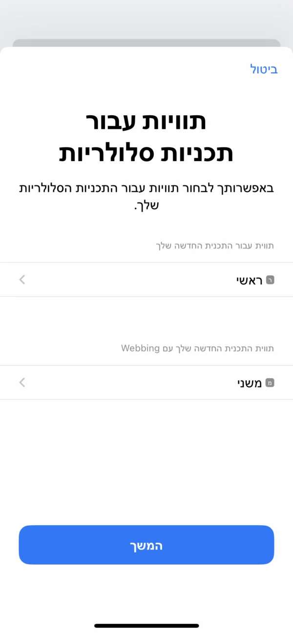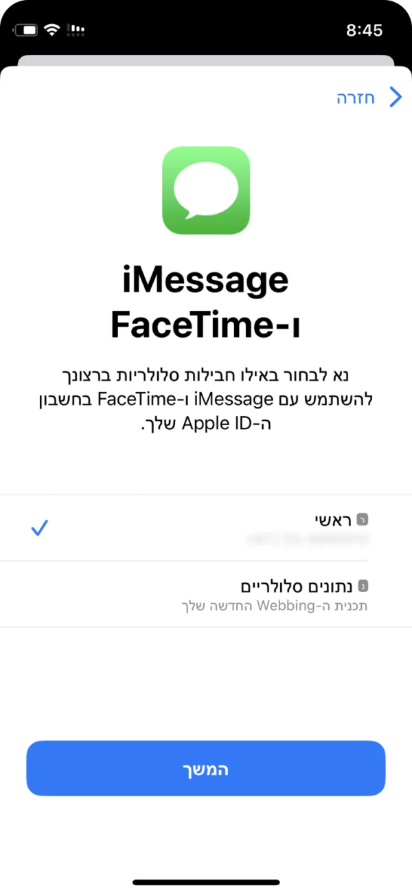 המשיכו עם תהליך ההתקנה ובחרו ב"ראשי" בשלבים הבאים בכדי להשתמש במספר שלכם להמשך קבלת שיחות, הודעות, iMessages ו FaceTime