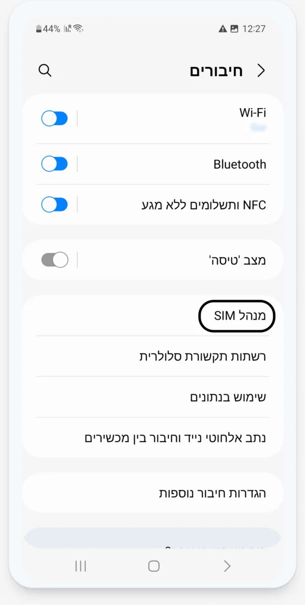1. לחצו על "הגדרות" > "חיבורים"> "מנהל סים".