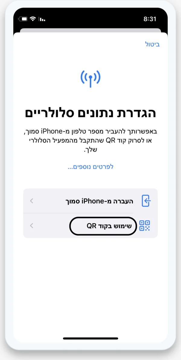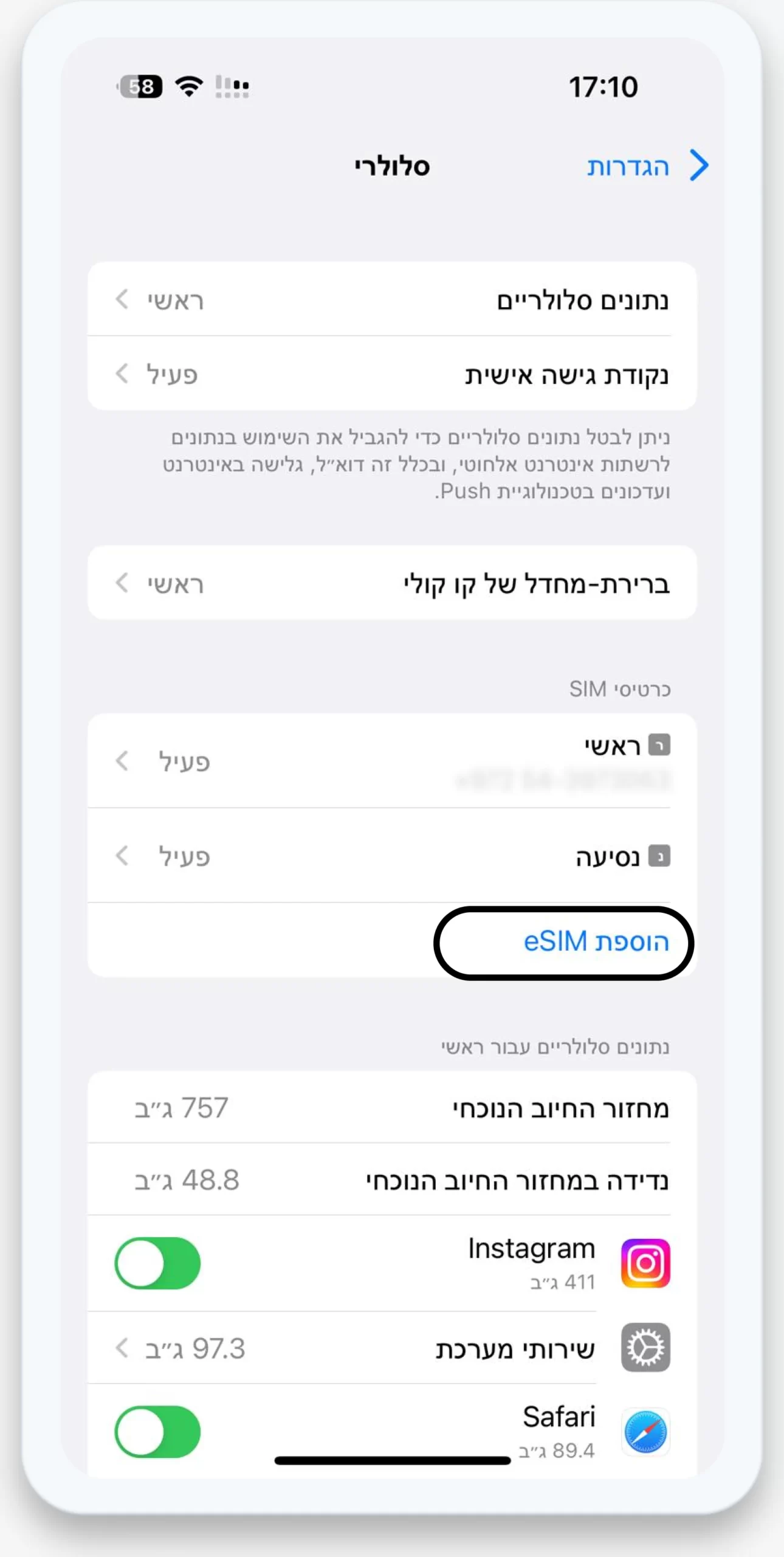 לחצו על "הוסף eSIM" (או "הוסף חבילה סלולרית" בחלק מהמכשירים).