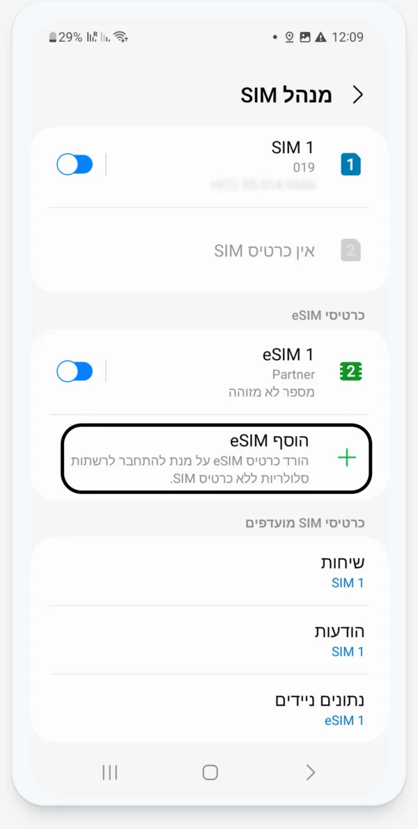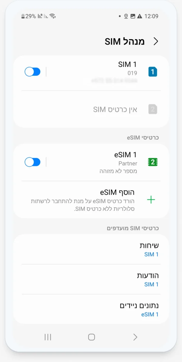 שימו לב שמתחת ל- "כרטיסי SIM מועדפים":