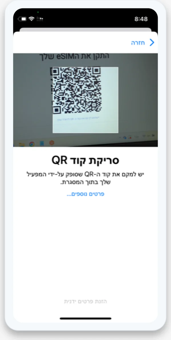 לחצו על "סרוק את קוד ה- QR שקיבלת מספק השירות"
