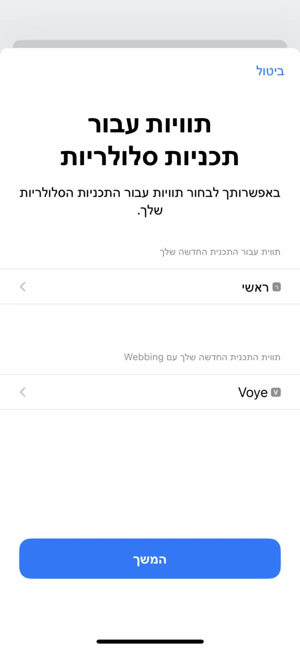 לחצו על ה- eSIM שנוסף לכם תחת "תווית התכנית החדשה שלך עם Webbing" בכדי לשנות את שם ה- eSIM שלכם.