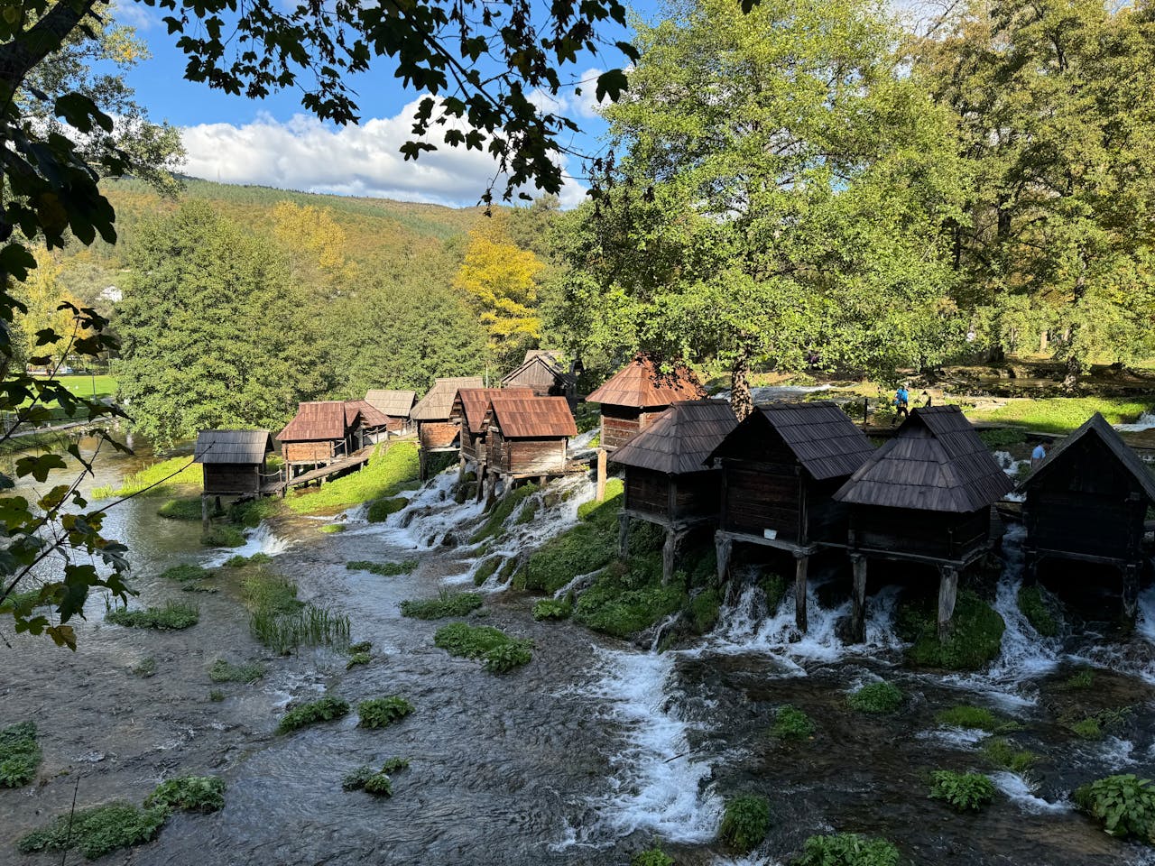 A short trip from Jajce will bring you to one of its most photographed spots: Mlinčići, the cluster of tiny wooden watermills perched between the Great and Small Pliva Lakes. These mills date back centuries and were once essential for grinding grain for the community.